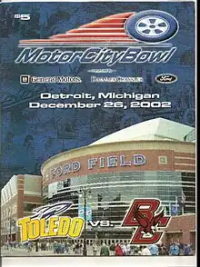 The 2002 Motor City Bowl was a post-season college football bowl game between the Boston College Eagles and the Toledo Rockets on December 26, 2002, at Ford Field in Detroit, Michigan. Boston College scored touchdowns on its first six possessions and routed Toledo 51–25.[1] It was the sixth time the Motor City Bowl had been played and the final game of the 2002 NCAA Division I FBS football season for both teams.