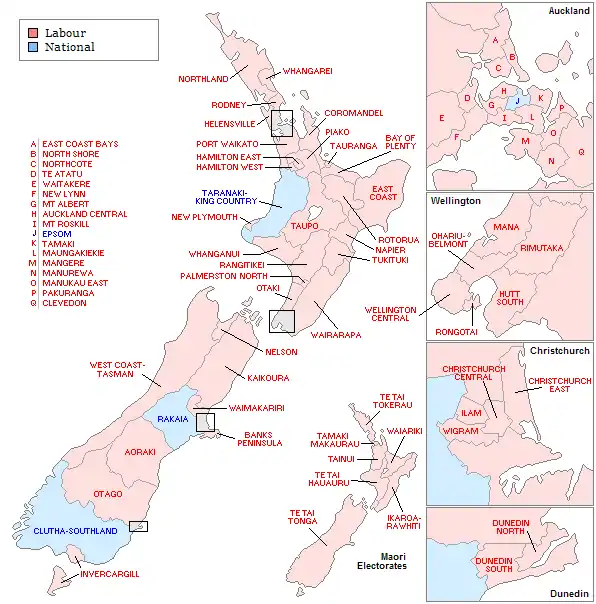- The seats of Mana, Napier, Otaki, and Te Tai Hauauru, all held by departing Labour MPs, were won by new Labour candidates (although the departing Mana MP became a list MP and the departing Te Tai Hauauru MP returned to Parliament in another electorate).