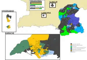 ![]() Map of Sindh showing Assembly Constituencies and winning Parties | ||||||||||||||||