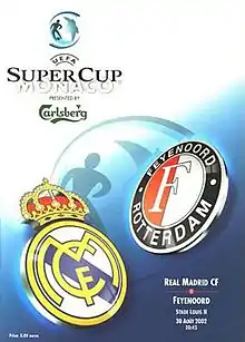 The 2002 UEFA Super Cup was played on 30 August 2002 between Real Madrid of Spain and Feyenoord of the Netherlands. Real Madrid qualified by beating Bayer Leverkusen in the 2002 UEFA Champions League Final. Feyenoord had made it to the Super Cup after beating Borussia Dortmund in the 2002 UEFA Cup Final. Real Madrid won the match 3–1, securing their first Super Cup win.