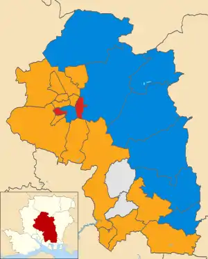 The results saw the Liberal Democrats stay in overall control of the council after retaining 35 seats on the council.[3][4] However the Liberal Democrat leader of the council, Rodney Sabine, lost his seat in New Alresfords ward.[2] The Conservatives increased their number of councillors from 11 to 14, while Labour lost 1 to only hold 3 seats.[3] Voter turnout was higher than nationally, with over 50% voting in 4 wards.[3]