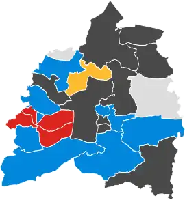 ![]() No election Colours denote the winning party, as shown in the main table of results. | |||||||||||||||||||||