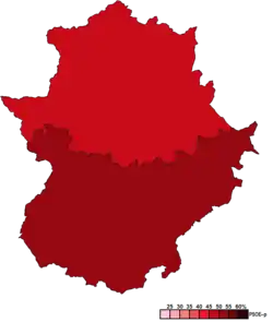 ![]() Constituency results map for the Assembly of Extremadura | |||||||||||||||||||||||||||||||||||||||||||||