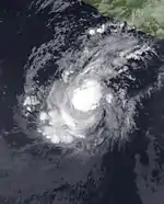 Tropical Storm Carlos formed from a tropical wave that crossed Central America on June 20. After gradually organizing, the wave was designated a tropical depression at 00:00 UTC on June 26 and further upgraded to Tropical Storm Carlos after twelve hours. The system moved generally northward and developed an eye, which was visible on Puerto Ángel radar. Carlos attained peak winds of 65 mph (105 km/h) shortly before making landfall about 60 miles (97 km) west of Puerto Escondido, or about 150 mi (240 km) east-southeast of Acapulco.[15] The storm rapidly deteriorated to a remnant low by 18:00 UTC on June 27, which persisted until dissipation on June 29.[15]