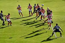 Entering the decisive part of the season, and still present in all competitions, Benfica's first game of February was a visit to Estádio Dr. Magalhães Pessoa to face União de Leiria. The home side startled Benfica, beating them 3–1.[97] The loss, which Koeman called a small setback, granted Sporting the chance to catch Benfica in second place.[97][98] On 8 February, Benfica met Nacional at home for the sixth round of the Portuguese Cup; the match ended in a goalless draw, even after extra time. Benfica won the match after a penalty shoot-out.[99] Four days later, Benfica returned to the winning path in the Primeira Liga after beating Penafiel 4–0. Geovanni opened the scoring in the first half, after which Nuno Gomes, Simão and an own goal from Roberto set the final result.[100] On 18 February, Benfica played on the road against Vitória de Guimarães. They did not play as expected and conceded two goals—one in each half—losing 2–0.[101] The loss severely hampered their title defence after being overtaken by Sporting and Braga and allowing leaders Porto—their next league opponent—to gain an eight-point advantage.[101][102] Three days after Guimarães, Benfica hosted Liverpool for the first leg of the Champions League round of 16. According to Adrian Harte, the match was "largely disappointing", but Benfica secured a vital win against Liverpool when Luisão scored with an 84th-minute header.[103] The final match of February was a home to Porto, the second Clássico of the season. The high-tension match was decided with a 40 m (130 ft) free kick from Laurent Robert that Vítor Baía could not stop.[104] The win relaunched Benfica's title race and Porto's lead was reduced to five points.[105] It was the first time in 29 years since 1976–77 Benfica had beaten Porto twice in the league and was also their first home win over Porto since 2000–01.[106]