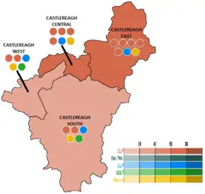 | Castlereagh West | 34.1 | 2 | 20.6 | 1 | 19.9 | 1 | 20.9 | 1 | 4.5 | 0 | 5 |