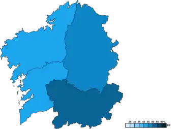 ![]() Constituency results map for the Parliament of Galicia | |||||||||||||||||||||||||||||||||||||||||||||