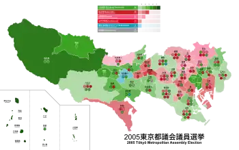 Prefectural elections were held in Tokyo for the city's Metropolitan Assembly on 3 July 2005. The election was a great success for the Democratic Party of Japan which won 16 additional seats, closing in on the Liberal Democratic Party.