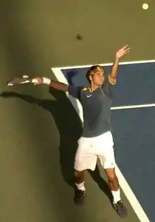 This was the first US Open in which future champions Novak Djokovic, Andy Murray and Stan Wawrinka competed in the main draw. Noteworthy in this tournament was a strong performance by American men, despite 2003 champion and former world No. 1 Andy Roddick losing in the first round. Wildcard James Blake reached the quarterfinals, upsetting world No. 2 Rafael Nadal in the third round before losing to Agassi. Robby Ginepri, whose run was enhanced by Roddick's early defeat, reached the semifinals and also lost to Agassi.