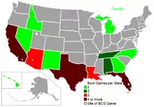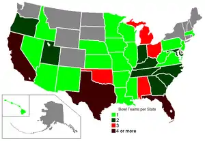 Number of bowl teams per state.