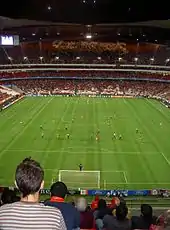 Three days after Leiria, Benfica received PSG for the second leg.[57] Benfica scored their first goal in the 12th minute and another before half-time. However, the Parisians got back into the game with a goal from Pauleta. Throughout the second half, Benfica threatened Mickaël Landreau's goalposts, finally scoring near the 90th minute when Simão converted a penalty resulting from a foul on Léo.[119] Simão told the media, "We knew we were stronger and had to take advantage of their mistakes. That is what he did."[120] In the quarter-finals, Benfica were due to play Spanish side Espanyol, first in Barcelona and then in Lisbon.[121] Domestically, Benfica played Estrela da Amadora on 19 March.[111] Because Sporting had beat Porto in the match between them, Benfica could close up their distance from the top of the table to one point if they won.[122] At the Estádio da Reboleira, Benfica defeated Estrela 1–0 with a goal from Petit in the 81st minute.[123] The win left Benfica with 51 points, one fewer than Porto. The Clássico was the next match;[123] Santos lowered fans' expectations by saying the league race was open for all of the Big Three and that there were still eight match-days to go before the season's end.[124]