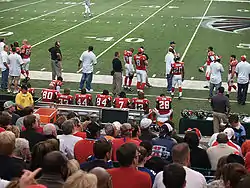 The Falcons sideline during the game