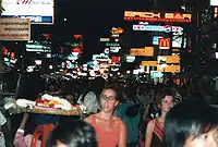 ![]() Citizens nearby the Victory Monument, the site of an explosion, watching the TV news shortly after the blast | |