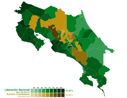 General elections were held in Costa Rica on 5 February 2006. In the presidential election, Óscar Arias of the National Liberation Party (Partido Liberación Nacional), a former president and Nobel Peace Laureate, was victorious over Ottón Solís of the Citizens' Action Party (Partido Acción Ciudadana) and twelve other minor-party candidates. Although Arias was expected to win by a wide margin, the actual polling reports were unexpectedly close. However, early results showed the contest to be closer than it actually was. The preliminary official report, after 88.45% of the vote counted, showed the result for President of the Republic almost tied between Arias with 40.51% of the vote and Ottón Solís with 40.29%. Given the small difference of only 3250 votes, the Superior Electoral Tribunal announced that a manual count of all the votes would start immediately and no official winner would be announced until that process was completed, approximately two weeks after the election.