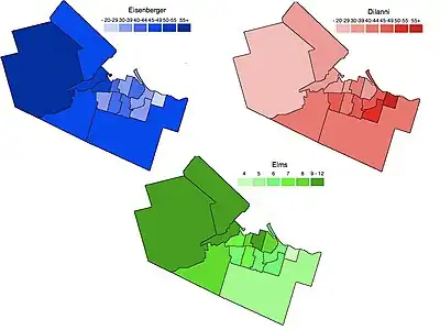 Gino Speziale: A tool and dye maker who ran a very small campaign. At most debates, people found that he supported Ms. Elms a majority of the time.[3]