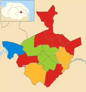 ![]() Map showing the 2006 local election results in Norwich. | |||||||||||||||||||||||||||||||||||||||||||||||||||||