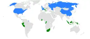 Guatemala announced its candidacy in 2002.[4] It had the staunch support of the United States,[5] as well as that of Mexico, the rest of Central America, Colombia, and the remaining members of WEOG.[6] The Central American nation has never sat on the Security Council, and is one of only six of the original signatories of the UN Charter to be in that position (along with the Dominican Republic, El Salvador, Haiti, Luxembourg, and Saudi Arabia). In recent years, following the conclusion of its 36-year-long Civil War and the succession of several democratically elected governments, it has been playing a more proactive role in multilateral affairs. For instance, after having been on the receiving end of UN assistance between 1994 and 2004 with the MINUGUA verification mission,[7] it is now a provider of troops for peace-keeping missions (215 worldwide[8] most in MONUC), with Guatemalan soldiers deployed in Haiti, DR Congo, Côte d'Ivoire, and other global hot spots.[9]