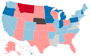 ![]() Map of lower house elections: Democrats gained control Democrats retained control Republicans gained control Republicans retained control Non-partisan legislature No regularly-scheduled elections | |||||||||||||||||||||