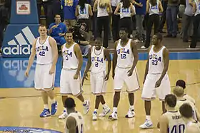 Thirteen scholarships were available to the team, and there were sixteen players on the roster.[8] Kevin Love received permission from Walt Hazzard to wear the No. 42 he wore as player for UCLA.[9] Hazzard's jersey had been retired by UCLA in 1996.[10]