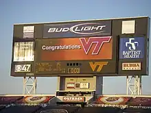 The 2007 ACC Championship Game kicked off at 13:10 EST in Jacksonville, Florida.[44] At kickoff, the weather was partly cloudy, with winds from the northeast at 18 miles per hour (29 km/h).[45] The air temperature was 69 °F (21 °C).[45] The official attendance estimate was 53,212,[45] but by most accounts the actual attendance was far lower.[46] Virginia Tech fans made up most of the crowd, and fewer than 5,000 Boston College fans were present at the game.[18][47] The game was broadcast on ABC and netted a television rating of 4.1, placing it behind the SEC Championship Game and the Big 12 Championship Game, which earned ratings of 5.9 and 6.6, respectively.[48]