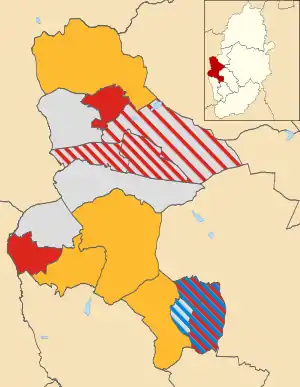 The results saw Labour lose their majority on the council, after a net loss of 8 seats saw them reduced to 9 councillors.[2] Among the defeated Labour councillors were 2 members of the cabinet, Jessie Parker in Sutton-in-Ashfield North and Stephen Mays in Underwood.[2] There were 12 independent councillors elected, but it was the Liberal Democrats who made big progress, gaining 8 seats to move level with Labour on 9 seats.[2] One of the Liberal Democrat winners, Helen Smith, became one of the youngest councillors in the country at the age of 19 after gaining a seat in Woodhouse ward.[2]