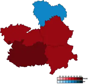 ![]() Constituency results map for the Cortes of Castilla–La Mancha | ||||||||||||||||||||||||||||||||||