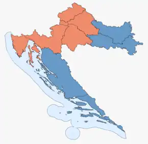 Since 1999 Croatia has been divided into 10 geographically-based electorates with around 250 000 - 300 000 registered voters. Each electorate elects up to 14 MPs chosen by the standard D'Hondt formula.[2]