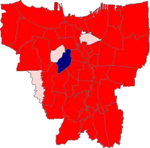 Following early vote counts, Anang-Dani conceded their defeat before the official results were released.[7] Fauzi Bowo-Prijanto were officially declared as winners of the election on 16 August, after securing 2,109,511 (57.87%) of the votes while Anang gained 1,535,555 (42.13%) votes. The former pair won in all constituent cities (and the Thousand Islands Regency).[1] The turnout of over 3.6 million voters (~65%) exceeded expectations.[8]