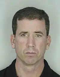 After the initial reports, Donaghy stayed at his home, before moving to a secure location to avoid the media scrutiny.[10] He surrendered on August 15, 2007, and pleaded guilty to two felony charges of conspiracy.[11] He told judges that he had used coded language to tip others about players' physical condition and player/referee relations, and he specifically admitted to passing information about two games during the 2006–07 season. In total, he received $30,000 to pass inside information to the bookies.[12] Donaghy also admitted that he had a severe gambling addiction, and was on medication to address it.[13] He was released on a $250,000 bond.[11]