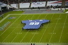 The Giants finished the regular season 10–6 and in second place in the NFC East, improving upon their 8–8 record in 2006 in which they finished third in their division.[1] They qualified for the playoffs as a wild-card team as the #5 seed, and beat the #4 seed Tampa Bay Buccaneers. Next, they defeated the top-seeded Dallas Cowboys, and the #2 seed Green Bay Packers (both of whom they had lost to in their first two games of the season by ten points or more) to become the National Football Conference (NFC) representative in Super Bowl XLII.[2] There, they defeated the heavily favored and previously undefeated 18–0 New England Patriots and spoiled their perfect season, aided by the famous Manning to Tyree Helmet Catch.[3][4][5]