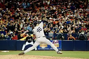 The offseason started with news of the unexpected death of Cory Lidle, who was an occupant in his own plane that crashed into a Manhattan high rise shortly after the Yankees were eliminated in the 2006 ALDS.[1] The Yankees made news by trading right fielder Gary Sheffield to the Detroit Tigers in exchange for pitching prospects.[2] The Yankees also traded away pitcher Jaret Wright[3] to the Baltimore Orioles in exchange for reliever Chris Britton.[4] On December 21, 2006, Andy Pettitte signed as a free agent with the Yankees.[5] However, no offseason move was bigger for the team than trading Randy Johnson back to the Arizona Diamondbacks, the team who he was with when he won the 2001 World Series against the Yankees, for pitcher Luis Vizcaíno and three minor league prospects.[6] Joe Torre is managing the team for the 12th consecutive season.