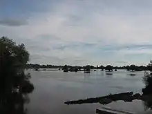 On 3 June, Stoke Goldington suffered flash flooding affecting 25 homes.[30] Stoke Goldington was affected again on 3 July, with 10 houses being flooded.[31] By 21 July, seventy homes and businesses were flooded by the River Ouse in Buckingham and 30 people spent the night in the town's Radcliffe centre,[28] but 10 miles (16 km) away a system of balancing lakes prevented Milton Keynes from suffering significantly, apart from a flash flood of Stony Stratford High Street from the River Ouse.[32][33]