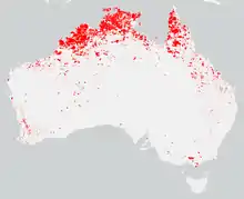 In October 2008, fire potential in Australia was assessed as being above average around the coast of the continent and below average inland. La Niña conditions were observed during the latter portion of 2007 and early 2008. However, throughout the year the majority of the continent, except for far north Queensland and the northern Northern Territory, experienced much lower than normal rainfall.[4] Central Australia had experienced below average rainfall for several years, reducing fuel and thus reducing the overall fire potential.[4]