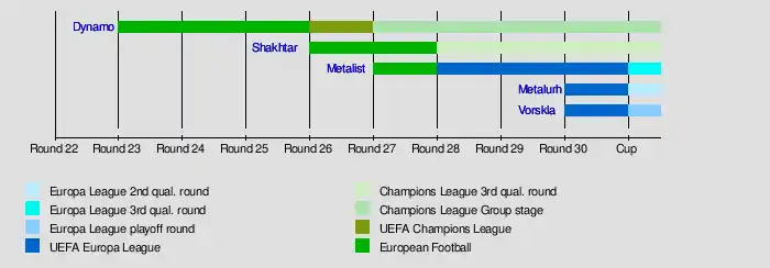 5 Vorskla Poltava 30 14 7 9 32 26 +6 49 Qualification to Europa League play-off round