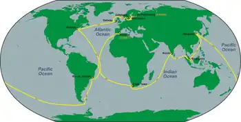 The second leg of began on 15 November 2008, with the sailors avoiding pirates off the coast of Somalia on their way to India.[12]