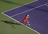Ivanovic was once again seeded first after being first seed already in Doha. Playing her first match at Pacific Life Open against number 77 Raluca Olaru, she had to give her best to get through inspired opponent and she eventually recovered from second set loss with 6–0 in the third set, winning after nearly two hours.[4] Though her next opponent was 31st seed, Tathiana Garbin, Ivanovic had better time on court now, as she lost three games in first set and bageled for the fifth time in a season in second set. In round of 16 another Italian, Francesca Schiavone, awaited. Thirteenth seed Schiavone started better, cruising through first set losing just two games. However, after managing to win the second set 7–5, she cruised herself through the third set, losing two games. In the quarterfinals, she faced one spot better ranked player, Vera Zvonareva, at number 21. But Ivanovic showed that ranking is not the most important thing that matters, as she beat her a lot easier, losing just five games to reach first semifinal in Indian Wells, enhancing previous best result of quarterfinals. Facing top 10 opponent for the fifth time in a season and world number 4 in Jelena Jankovic, Ivanovic won in straight sets to reach first final of Indian Wells Masters.[5] Ivanovic improved head-to-head record to 5−1 against Jankovic. In the final she played against Svetlana Kuznetsova, the final contested of first and second seed. Ivanovic won 6–4, 6–3 to win third Tier I title, the biggest after Grand Slam. This was her first title of 2008. Also, as Indian Wells is called "The fifth Grand Slam", and as Ivanovic didn't won any Grand Slam at the moment, this was her biggest title at that moment. She also improved to convincing head-to-head with Kuznetsova, the same as with Jankovic, 5−1.