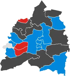 ![]() No election Colours denote the winning party, as shown in the main table of results. | |||||||||||||||||||||