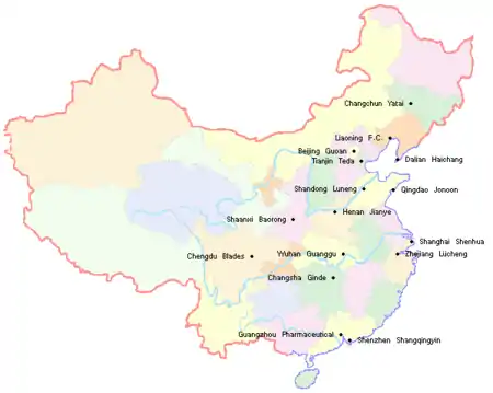 | 16 | Wuhan South Asia Optics Valley | 30 | 0 | 0 | 30 | 0 | 90 | −90 | 0[lower-alpha 2] | Withdrew from the league and folded |