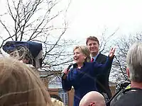 Hillary Clinton and Evan Bayh campaigning in Terre Haute, Indiana.