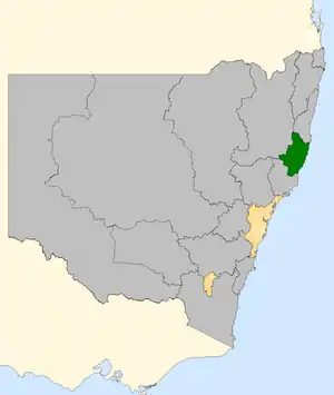![]() Lyne (green) within New South Wales | |||||||||||||||||||||||||