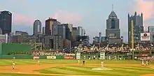 Pittsburgh went 6–9 in interleague play,[11] including two wins against the New York Yankees who returned to Pittsburgh for the first time since the 1960 World Series.[12] On July 12, in a game against the St. Louis Cardinals, the Pirates came back to win a game that they trailed by six runs in the seventh inning. It was only the second time in the past 25 years that the Pirates won at home after scoring runs in the seventh, eighth, ninth, and extra innings.[13] The Pirates finished out the remainder of July with a 6–9 record—50–58 overall. On the final day of July, the Pirates made a deal with the Yankees to send outfielder Xavier Nady and pitcher Dámaso Marte in return for Jeff Karstens, Daniel McCutchen, Ross Ohlendorf and José Tábata.[14] Later in the day the team became involved in a three-team deal in which the Pirates sent Jason Bay to the Boston Red Sox in return for four players from the Los Angeles Dodgers.[15] The Pirates won seven of the first 18 games in August before dropping ten consecutive games to close out the month. Pittsburgh entered the final month of the season 21 games below the .500 mark. On September 7, the Pirates lost their 82nd game of the season, tying them with the Philadelphia Phillies as the only two franchises in professional sports history to have losing records in 16 consecutive seasons.[16][17] The Pirates concluded their season on September 28 with a victory against the San Diego Padres.[18] The team became the second in the Pirates' 122-year history to have no pitchers to win 10 games.[19] The performance of the pitchers lead the team to fire pitching coach Jeff Andrews after the season.[20]
