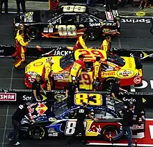- The traditional skills challenge for the pit crews, the NASCAR Sprint Cup Series Pit Crew Challenge presented by Craftsman, was held on Thursday night, May 15 at Time Warner Cable Arena. This annual skills challenge again awarded prizes to top teams and individuals for the best demonstration of pit stop skills, including the main competition, a single-elimination tournament. The Team Red Bull crew of Brian Vickers' No.83 car won the event; however, since they had not won a race in the period prior to the All-Star main event, Joe Gibbs Racing's No.11 Denny Hamlin team got the first pick of the pit box to use on pit road for the All-Star Race as they were the runner-up and had won a race. Vickers failed to even make the main event, finishing fourth in the Showdown.