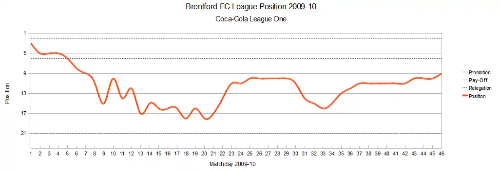 During the 2009–10 English football season, Brentford competed in Football League One. In the Bees' first League One season since 2006–07, the club finished in 9th place and reached the third round of the FA Cup.