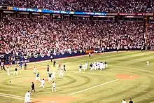 ![]() The Twins celebrate after winning the game 6–5. | |||||||||||||||||||||||||||||||||||||||||||||||||