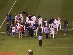 The Twins ended the 162-game regular season tied with the Detroit Tigers, necessitating a one-game playoff. This made the Twins the first major league team ever to play in a tie-breaker two years in a row (they lost one to the Chicago White Sox in 2008). The game took place on Tuesday, October 6 at the Metrodome. The Twins won the game, 6-5, in 12 innings on Alexi Casilla's game-winning hit scoring Carlos Gómez.[8]