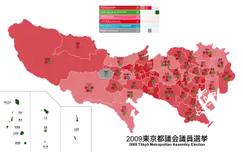 Prefectural elections for the Tokyo Metropolitan Assembly were held on 12 July 2009. In the runup to the Japanese general election due by October they were seen as an important test for Taro Aso's ruling coalition of the Liberal Democratic Party (LDP) and the New Komeito. New Komeito considers Tokyo as an important stronghold and had repeatedly asked Prime Minister Aso to avoid holding the two elections within a month of each other.[1]