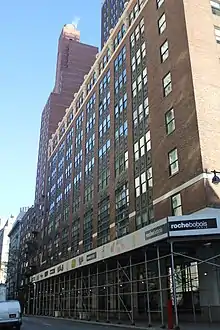 Manhattan's Silk District, concentrated around the lower section of Park Avenue South in the 19th century, had moved northward to the intersection of Madison Avenue and 34th Street by the early 1920s.[31] During that time, the upper-class residences that had characterized the adjacent portion of Madison Avenue in the 19th century were being replaced with retail establishments.[32] The Astors supported the area's commercial development, but the financier J. P. Morgan Jr., who lived just northeast of the Astor houses, opposed the changes.[10][33] In 1916, a New York state court invalidated the Murray Hill Restrictive Agreement, an 1847 covenant restricting the development of non-residential buildings on Madison Avenue.[34][35] This prompted Morgan and a local community organization, the Murray Hill Association, to buy land in an effort to prevent commercial developments.[34]