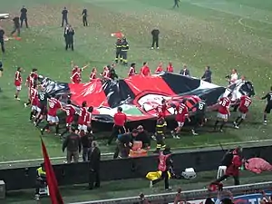 At the following weekend, Milan were to face Internazionale in the first Derby della Madonnina of the season, which the Rossoneri had lost on the last three occasions.[39] Only five minutes into the game, Zlatan Ibrahimović was awarded a penalty for being taken down by Marco Materazzi; Ibrahimović himself converted the spot-kick to put Milan ahead. Despite being left with ten men, as Ignazio Abate was sent off in the 60th minute, Milan managed to maintain the lead and claimed a third straight victory.[40] Milan then played host to Fiorentina on 20 November. A goal from Ibrahimović shortly before half-time was enough for Milan to claim a 1–0 victory. The Swedish striker chested a cross from Thiago Silva inside the penalty area and scored in the bottom right corner with an overhead kick.[41]
