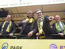 ![]() Jürgen Klopp (second from left) celebrating the club's title win | ||||