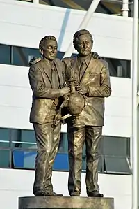 The month ended with the unveiling of the long proposed Clough/Taylor statue at Pride Park. In 2008 a 9'0 high bronze statue of the pair – who had managed the club between 1967 and 1973 – was commissioned to adorn the north west portion of the ground to be called Unity Plaza. The statue was designed by Andrew Edwards and features both Clough and Taylor holding Football League First Division which they won with the club in the 1972. It was unveiled on 27 August 2010, 24 hours before the 2–2 draw with Queens Park Rangers.[79]